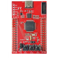 板载: LED一个电源指示灯,一个用户指标灯;2个用户按键,1个复位按键; USB接口除供电外,提供一个CH340的串口。